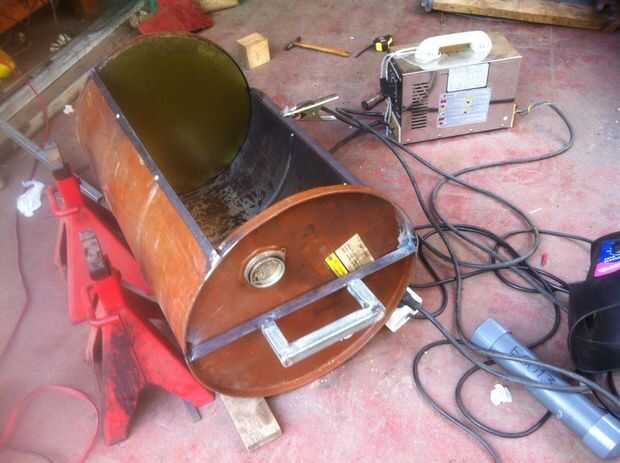 Primera parte del trabajo fue subir el cuerpo del barril hasta la parte superior de la parrilla y manijas de elevación son perfectamente paralelos entre sí cuando todo haya terminado para arriba.