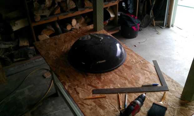 Usé un estándar todos de sierras para cortar el agujero. Una vez cortadas, he probado para asegurarse de que la parrilla y rotis encajaría. La parrilla es en bloques, si no, la unidad de rotis no sería funcional. No es gran cosa para mí. Puedo construir un segundo conjunto de patas de la parrilla para que sea más alto.