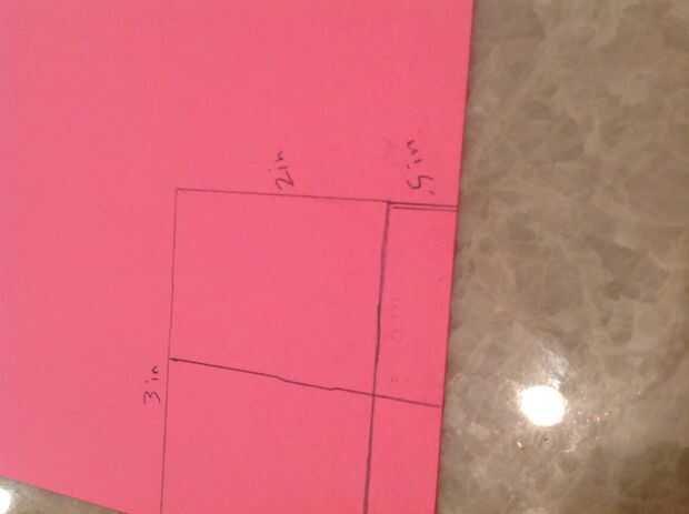 1. dibuje un rectángulo de 3 x 2" en su papel. Debajo de él, compartiendo una línea, dibujar una .5x3 "rectángulo. Corte toda la plantilla.