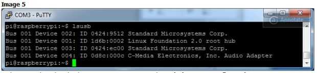Y si se teclea lsusb verá una referencia a Adaptador de Audio C Media electrónica pero no hay mención de CM108 y el VID/PID es 0x0d8c:0x00c