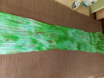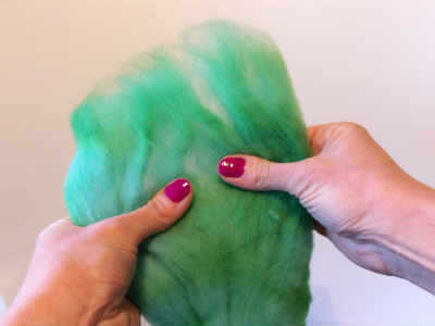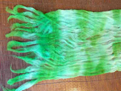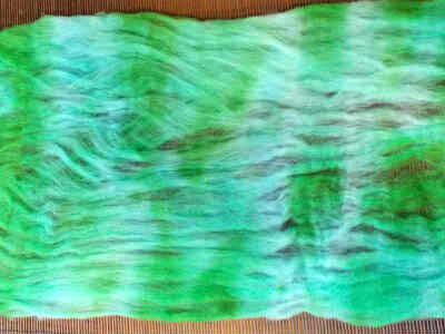 Cubrir la mesa con plástico y colocar la persiana o una tira de plástico de burbuja. Extendido y fino su itinerante por tire suavemente de ella aparte, manteniendo las fibras conectadas uno al otro pero dejando huecos y zonas delgadas. El ancho que desea debe ser un poco más ancho que su bufanda final para permitir la contracción. Tómese su tiempo con esto y trate de no dejar agujeros grandes. Los pequeños están muy bien y añadir a la textura. Hacer esto para toda la longitud de mecha. Poner esto hacia fuera en el abrigo de ciego o de burbuja.