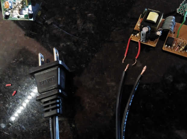 • Soldar el cable de alimentación a los cables apropiados del adaptador de alimentación USB