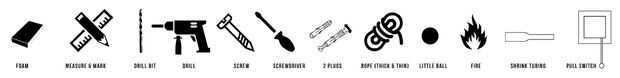 destornillador de plano - pull interruptor - cruceta destornillador - regla - Lápiz - Taladro - broca de 3mm - destornillador - 2 enchufes (por M3) - 2 tornillos M3 - el bloque de Eclips - cuerda - marker - una gruesa cuerda agradable perro - un poco bola un encendedor/lucifer - tubería del encogimiento - tu perro