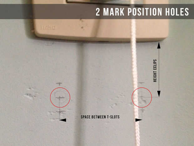 1) verifica que la distancia entre la parte inferior del marco y los tornillos sea al menos la altura de los Eclips. Y-coördinates: inderneath de 30 mm marco X-coördinates;
