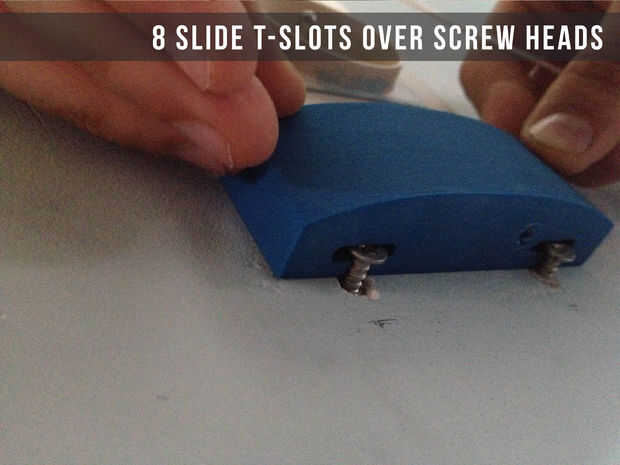 8) Eclips el lugar entre la parte inferior del marco y los tornillos y tire la Eclips para las cabezas de tornillo se deslicen dentro de las ranuras en T.