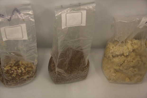 Etiqueta de cada bolsa con la variedad de hongo te causa no poder Dile variedades aparte del aspecto del micelio. Ahora podemos observar y saber que es la bolsa de Shiitake y el Maitake que.