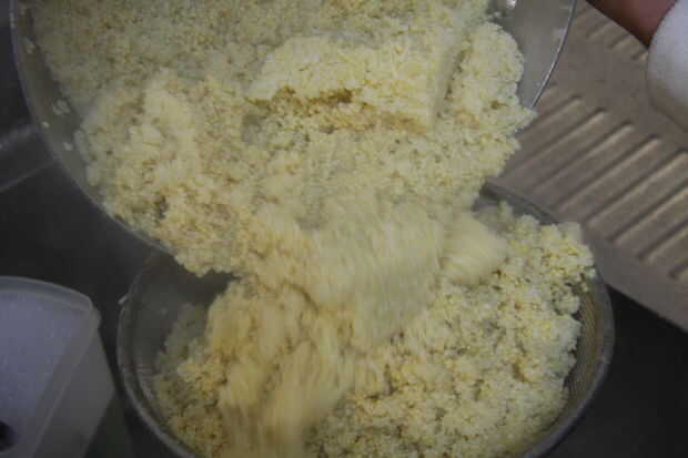 Cuando esté listo, vaciar el grano. Coge un colador y volcar el agua y el grano en el colador hasta que el agua es totalmente hacia fuera, dejar escurrir unos minutos. ASEGÚRESE DE QUE EL AGUA ESTÁ MUY CALIENTE.