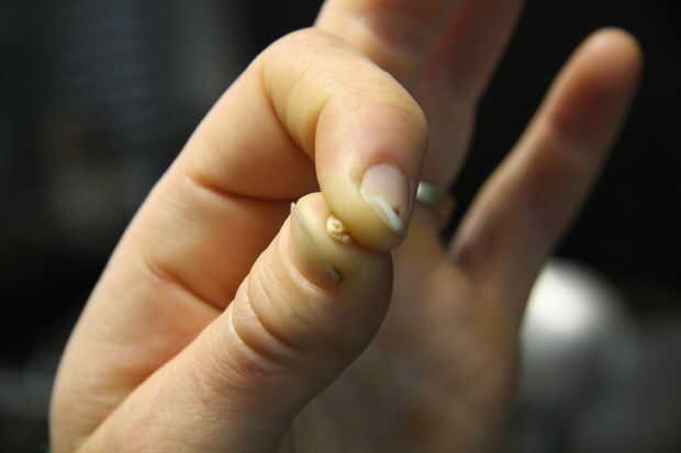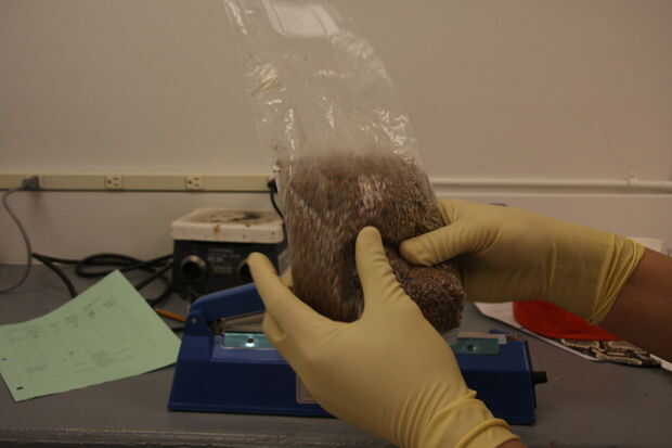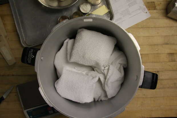 Envolver cada bolsa con paños húmedos y colóquela en la olla a presión. Envolver las bolsas con una toalla seca derretirá el plástico, así que hicimos las toallas húmedas para ver si las bolsas se derretirán y no derriten a todos. Envuelva el escalpelo y el vaso con papel de aluminio. Asegúrese de que las bolsas están completamente cubiertas para que no derrita el plástico. Esterilizar el bisturí y vaso. Cocer durante 2 horas a 15-18 PSI