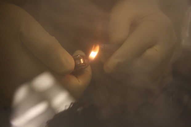 Tomar el encendedor, el bisturí en la llama para esterilizarlo. Enfriarlo en el borde de la placa de agar que vas a usar para que no queme el micelio.