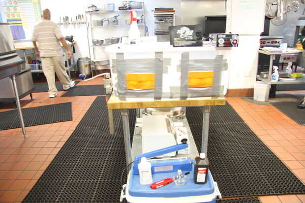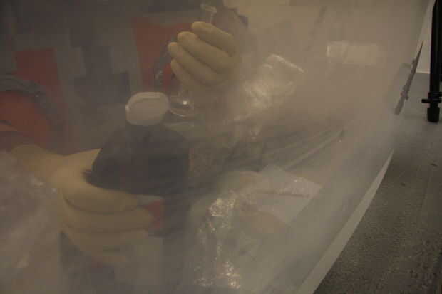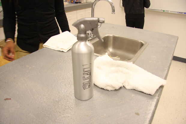 Esterilizar la guantera y todo lo que pone en la caja con lejía solución 10% de cloro y 90% de agua, el blanqueador del aerosol en el aire y limpiar el contador. Utilice alcohol para esterilizar las manos antes de poner en la guantera.