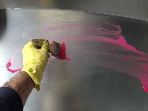 Cuando el acero inoxidable se calienta a temperaturas de soldadura, da un montón de bonitos colores - oro, rojo, púrpura, azul - dependiendo de las temperaturas. Éstos vean bien, pero si desea que su acero inoxidable parecen como acero inoxidable nue