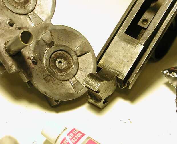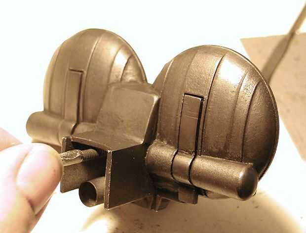Para el interior cara, he probado primero mediante frotación y mejora para conseguir un aspecto metálico y luego hacer lavados en la parte superior con acrílicos. La intención era como metal desnudo que había sido expuesto a los productos de combustión dentro de la cámara. Es por ello que existe un patrón de quemado en polvo alrededor de los cebadores. Desafortunadamente, aunque veía muy bien desde ciertos ángulos, todo parecía demasiado como pintura para mi gusto.