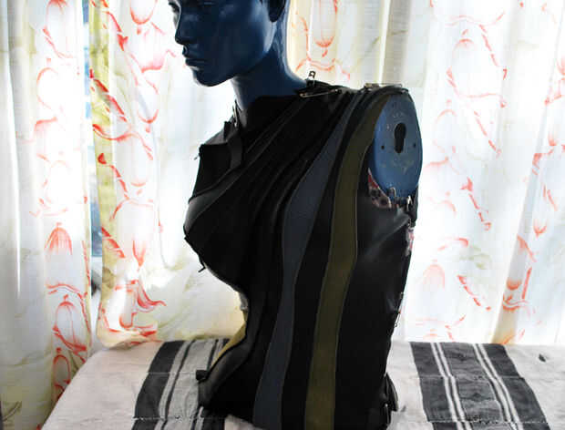 En caso de no ver los ultimos 3 Kali Instructables, nuevamente estoy haciendo un viejo caminante de aluminio en Kali, la diosa hindú de varios brazos del tiempo y del empoderamiento. Su "piel" está siendo hecha de restos de cuero. En esta parte estoy terminando su frente.