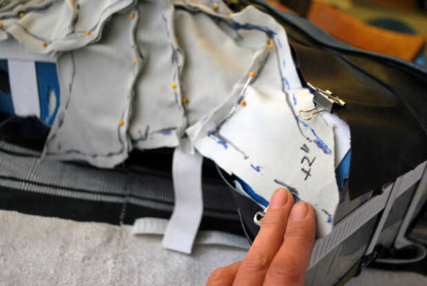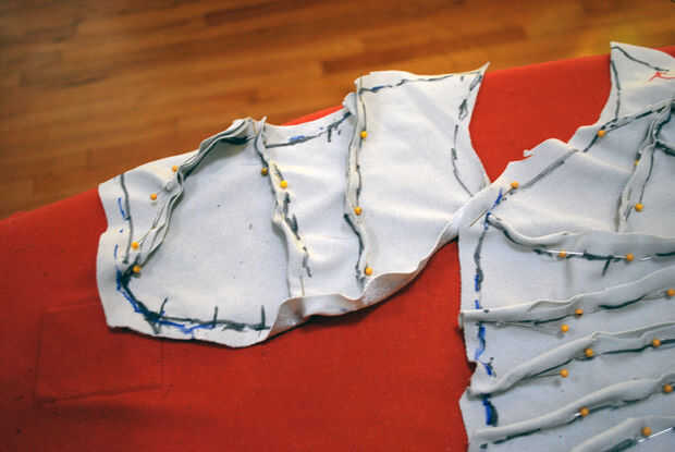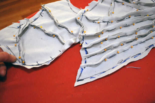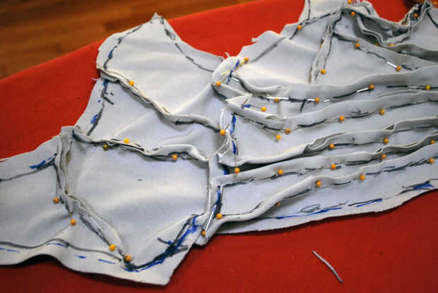 Pro tip: incluso con regular control de patrón, no siempre es posible decir cómo algo se encajan hasta que se hace en el material final. Usando un material similar para hacer el patrón no es ninguna garantía. El tejido puede ser un poco diferente, el tramo puede ser sólo un poco apagado o tal vez el telar fue más estricto en el mismo lugar y en otro no. La clave para conseguir un buen ajuste en un patrón complicado es montar de nuevo con frecuencia.