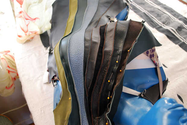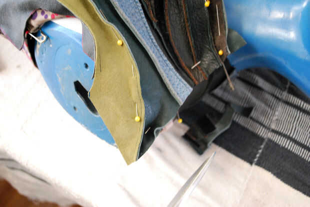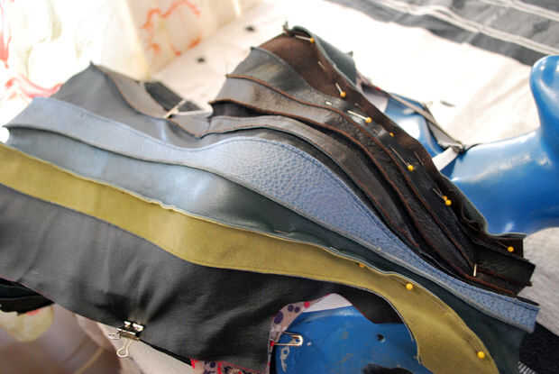 Mientras tenía el cuero en la forma, pensé que podía verificar otra vez mis patrones. Prueba de cabida piezas 6, 7 y 8 en el maniquí. Piezas 6 y 7 parecía funcionaría, pero no estaba segura sobre la pieza #8. No hay que preocuparse. Más tarde siempre pude Compruebe el ajuste.