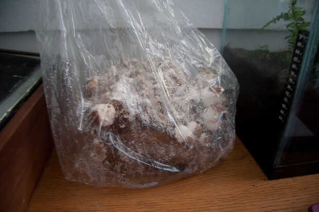 La minigranja se suelta algo de humedad después de algún tiempo. Esto significa que dejará de producir hongos Shiitake.