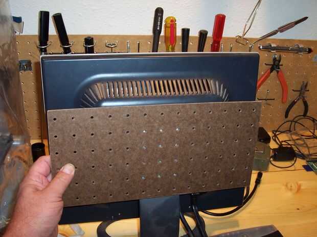 (1) en primer lugar, encontrar una pieza adecuada de material base de montaje no conductores. Madera fina o plástico hará. En este caso utilicé algunos desechos del pegboard. Tenía la esperanza de utilizar algunos de los agujeros a mi ventaja, pero que resultó para ser una ilusión.
