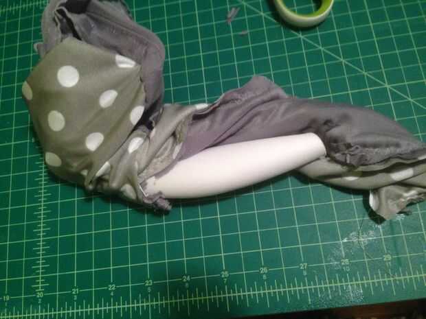 Girar la tela usando los lados abiertos para traer adentro hacia fuera. Esto puede ser un poco difícil con las copas del busto. Sugiero las copas del busto del balanceo y alimentación a través de las aberturas