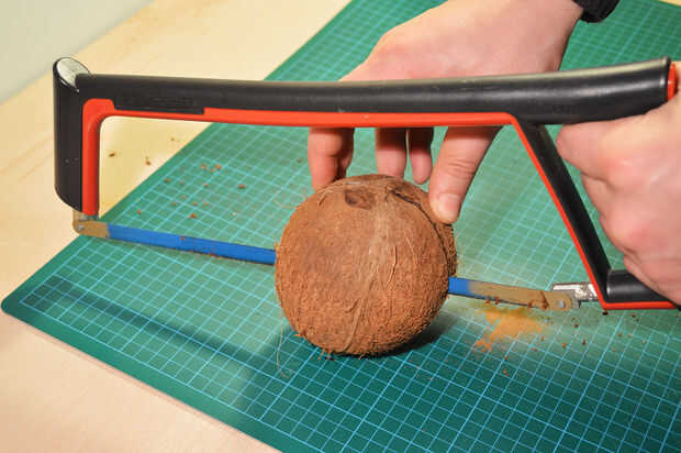 Vio el coco en dos piezas. Intenta hacer como incluso en tamaño como sea posible.