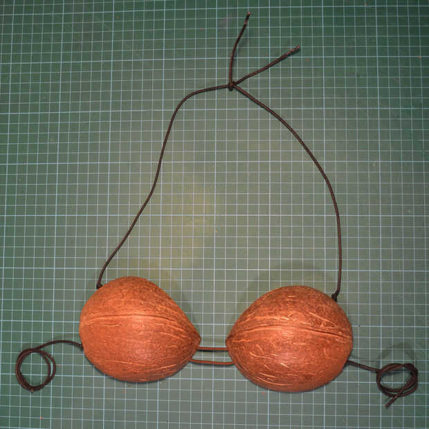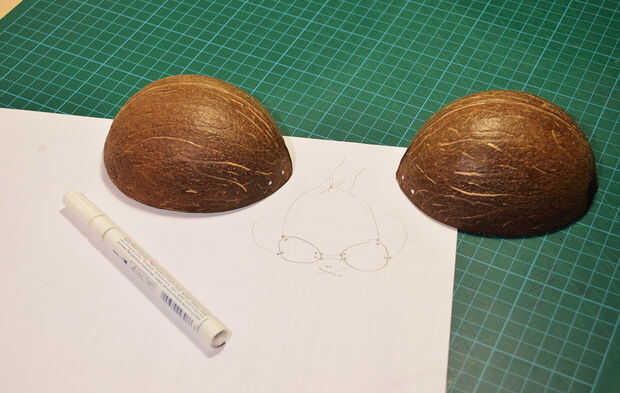Marque las posiciones de los orificios a realizar según su diseño. Colocando dos cordones en el medio de conectar las dos tazas, agrega fuerza adicional a la parte superior del bikini.