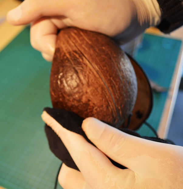 Pulir la superficie exterior de la parte superior del coco con algún pulimento madera para un acabado más agradable y esto hará que también sea resistente al agua.