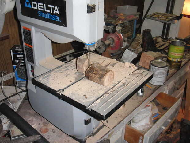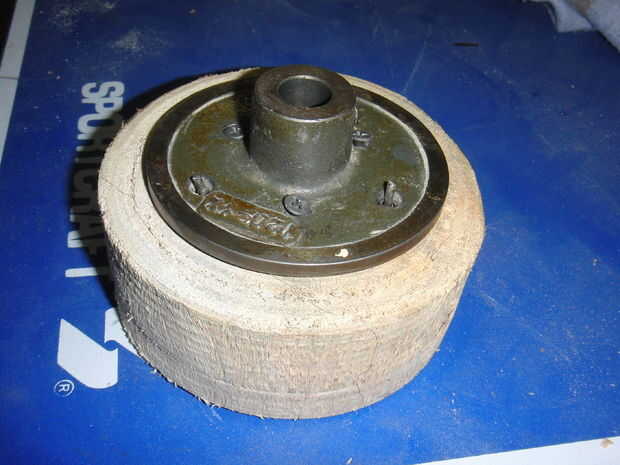 En cuanto a madera va necesita un pequeño trozo de una madera dura granuloso cercano. No soy experto en tipos de madera para ir alrededor de recoger diferentes tipos y jugar con ellos hasta que encuentre uno que me gusta. No sé qué tipo he utilizado fue sólo un 2" registro que encontré en el suelo. Como chipf mencionado en un comentario Asegúrese de que la madera no es verde, lo que significa su secado durante un período prolongado. Madera verde del encogimiento y deformación que seca algo circular cuando usted está haciendo cambia la forma con el tiempo.