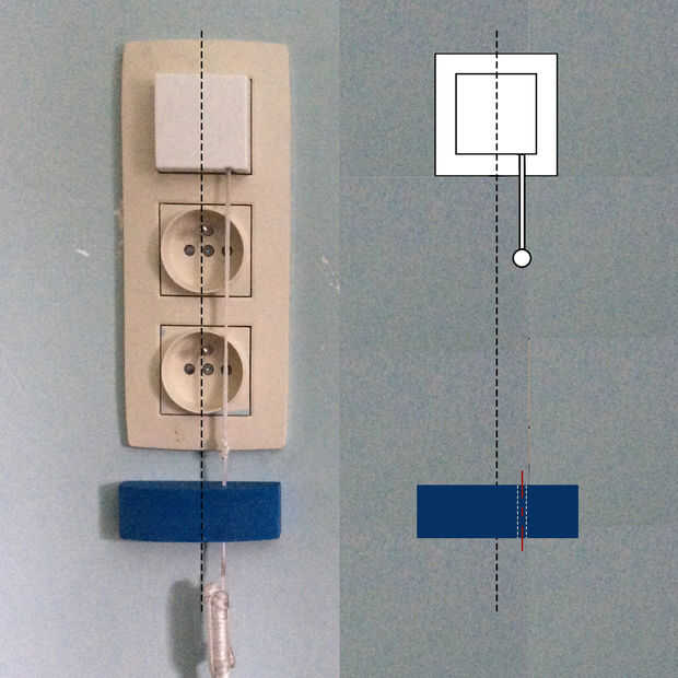 4) con un interruptor, la cuerda no es colocada en el centro el interruptor lo Mida y marque la X-coordenada donde debe venir el agujero para la cuerda para que la cuerda puede colgar verticalmente.
