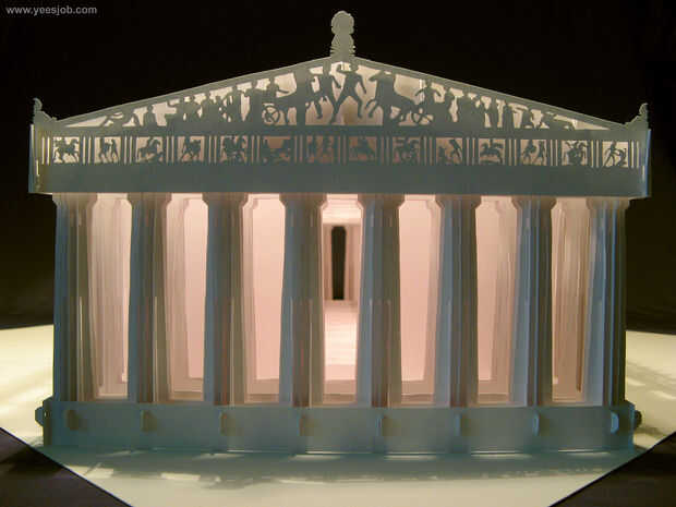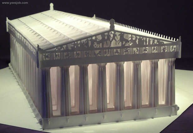 Siempre he sido de interesados en la arquitectura griega antigua, así que un día mientras estaba aburrido, que decidí hacer un modelo a escala del Partenón en Grecia. Esto demostró para ser simple, sólo cortando diferentes tamaño rectángulos y pegar