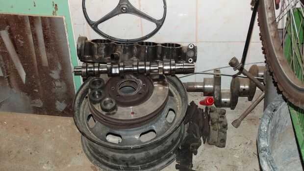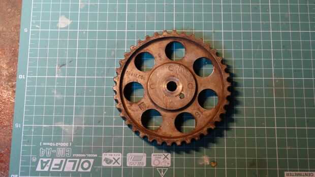 1 algunas piezas del motor: árbol de levas, caja de engranaje (piñón)