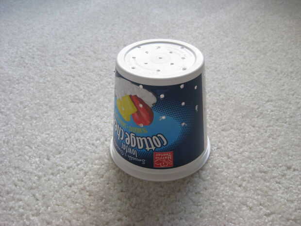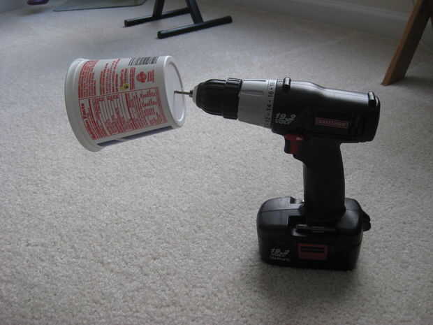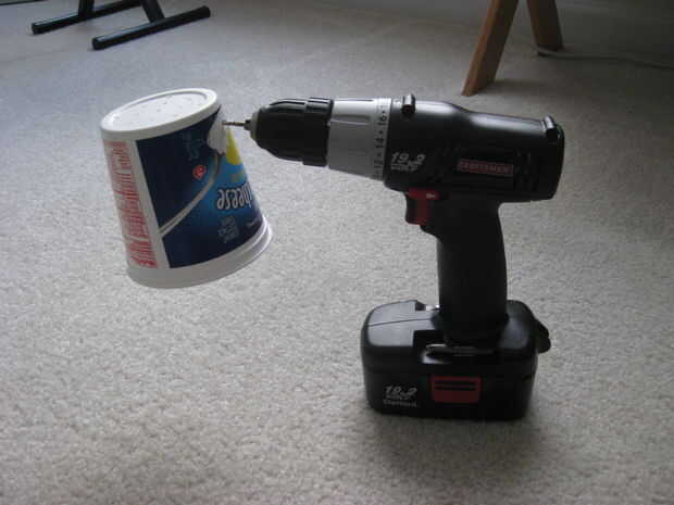Después de esto por primera vez, yo recomiendo poner más agujeros en la parte inferior y mantener bajos los orificios laterales. Cuando recoja la canasta, tienes que mantener los orificios laterales por debajo del borde del recipiente externo. Inicialmente decidí ir por más agujeros de lado tratar de evitar que las piezas pequeñas que alojado en la parte inferior, pero si vas suficientemente pequeño con la broca, debe estar bien.