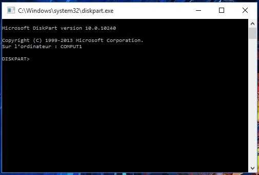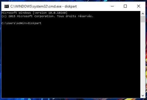 -Escriba "diskpart" y pulse la tecla de retorno. Debería aparecer una nueva ventana