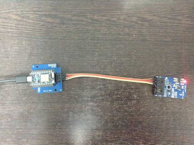 Luego conectarse el un extremo del cable de I2C STS21 sensor y el otro extremo el escudo del I2C.