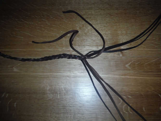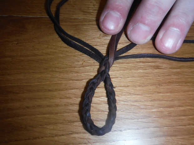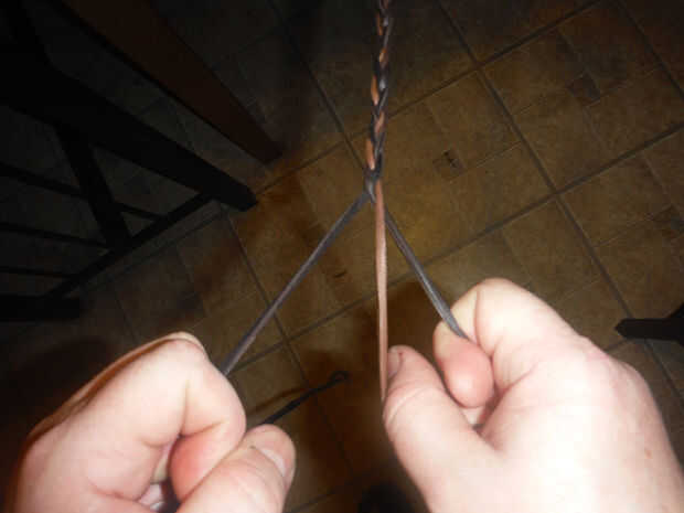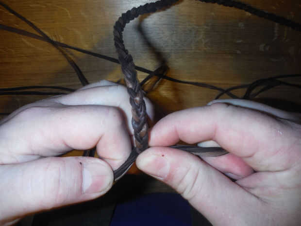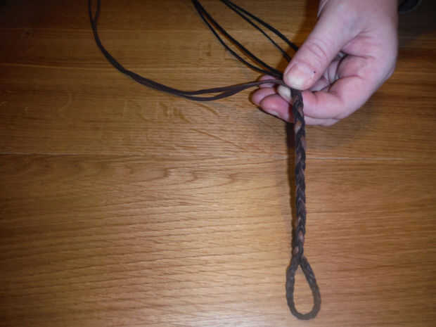 De aquí encendido en, nos referiremos al extremo con el bucle de dedo como el 'miembro primario', para mayor claridad. Una vez has doblado sobre su lazo del dedo y separa las 6 hebras en tres pares, coloque el bucle en una superficie sólida y comenzar el trenzado de la misma manera que lo hizo crear el bucle en sí mismo. Es decir, dos sobre el centro a la izquierda dos, dos derecha en centro dos, dos sobre el centro a la izquierda dos, dos derecha en centro dos, etc. Repita este proceso hasta que el miembro primario es tan largo como su extremidad del dedo extendido a su hombro. Asegúrese de que usted mantenga la trenza de la extremidad tan estrecha como sea posible. Habrá algunos estiramientos durante el uso y no desea que las extremidades de la eslinga a ser débil, posiblemente romper.
