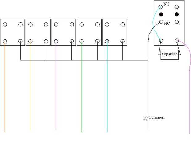 Paso 1: Si no lo ha hecho, montar sus repetidores que va a utilizar en el carril, o un tablero. Pegamento caliente funciona muy bien. Si desea, marque las clavijas de dos bobinas y los pernos de normalmente abierto con un rotulador para que no se olvide.