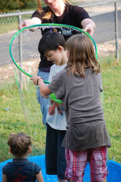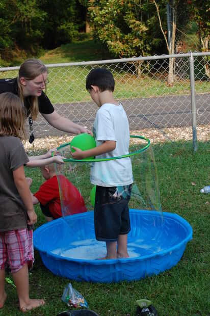 Los jugadores a utilizar el aro del hula para hacer burbujas gigantes sobre sí mismos.