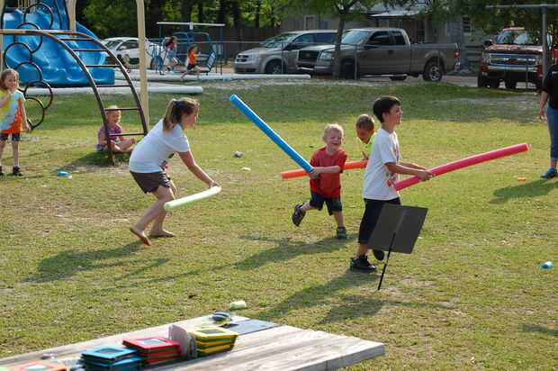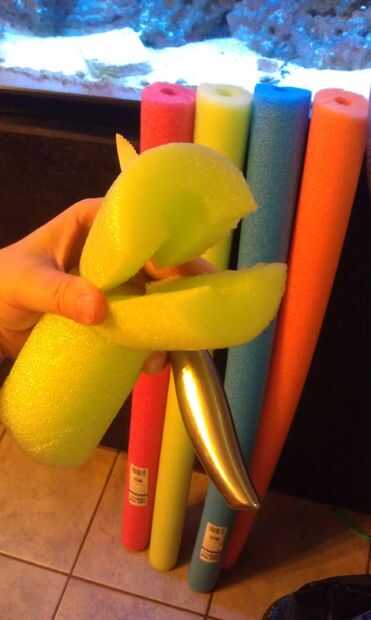 Vi este juego es la acción en la escuela de mi hijo para día de campo y los niños y profesores parecían pasamos de maravilla jugando. Se dividen en varios grupos pequeños. Tal vez 2 o 3 por equipo. Usted necesitará un fideo para cada equipo.
