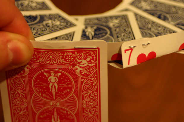 Mantenga grapado hasta llegar a toda la línea de las tarjetas terminadas. Ten en cuenta que usted tendrá la última carta cambió de puesto la misma dirección primera.