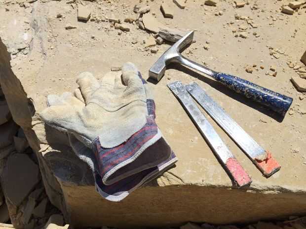 -Cincel para separar las capas. Lo mejor es un cincel fino biselado doble para separar suavemente las capas delgadas de caliza sin les agrietarse. Los mejores cinceles se hacen específicamente para este propósito y se puede encontrar en www.geo-tools.com. Puede utilizar un cincel normal encontrado en la ferretería pero debes ser cuidadosa porque son mucho más gruesas.