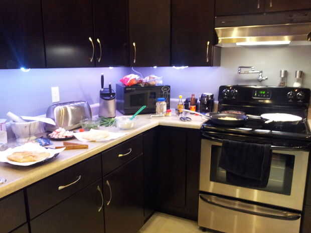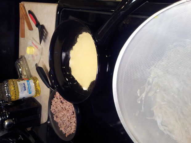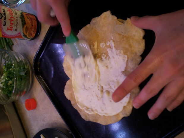 Cortar la cebolla verde y la col muy fina.  Acitronar el repollo en una sartén con aceite semillas de sésamo a fuego medio hasta que se convierte en sólo suave.  Coloque las cebollas verdes a un lado para el uso más adelante.  Cocine el cerdo de tierra, sin condimentos.  Hacer la pasta wonton, usé esta receta y funcionó muy bien!  http://Allrecipes.com/Recipe/wonton-wrappers/detail.aspx      A pesar de no cortar la masa (después se rueda hacia fuera con rodillo) en triángulos pequeños; dejar el laminado en masa tan grande como lo puede hacer.  Abrir paquete de 8oz de queso crema, colocar en un tazón microondas y calor hasta hacerlo suave.  Una vez suave, agregar ajo picado (en la cantidad a tu gusto) y pimienta blanca al gusto.  Obtener el cangrejo fuera de su embalaje y rebanada o desgarro o picada y reservamos para el topping de la pizza.