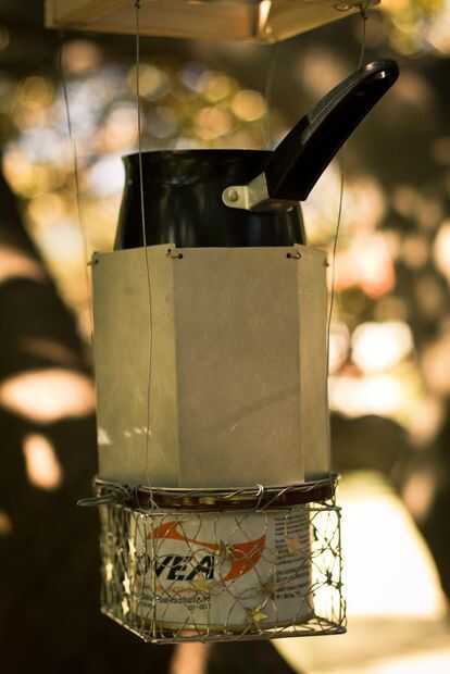 Encontramos un buen lugar (el único) para colgar nuestra estufa, pero estábamos bastante difusión fuera y todo tenía que pasar a lo largo de un elemento a la vez.