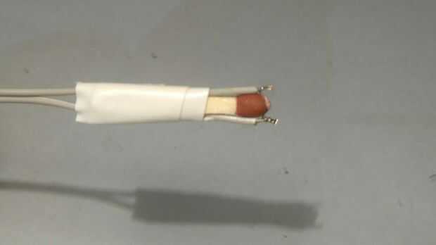 Tomar un trozo de cinta aislante y arreglar todo. y finalmente tomar un par de tijeras y retire los cables en exceso, pero tenga cuidado que no cortar la conexión trenzada del cable delgado.