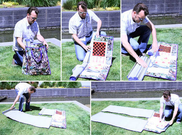 Este bolso de actividad portable descomprime a la mentira plana, ha construido en esterillas de playa que se pueden rodar hacia fuera y tiene un montón de almacenamiento interior para mantener todo su entretenimiento firmemente en su lugar hasta que estés listo para pasar un buen rato.