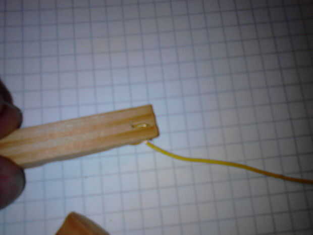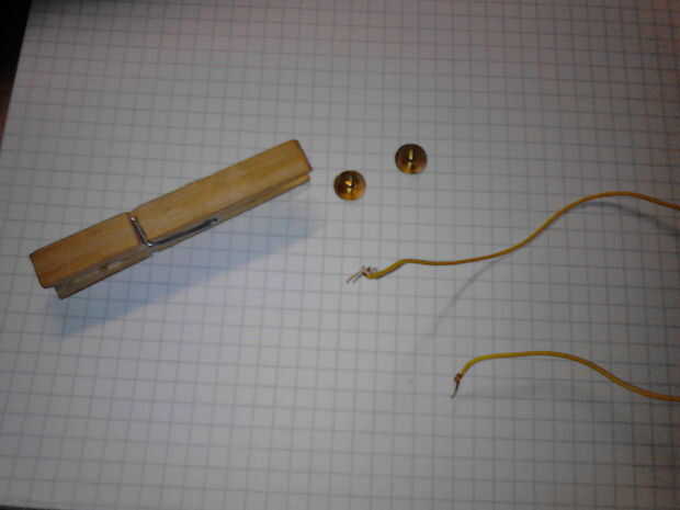 Tomar una pinza de ropa, 2 chinchetas y 2 pequeños pedazos de alambre,