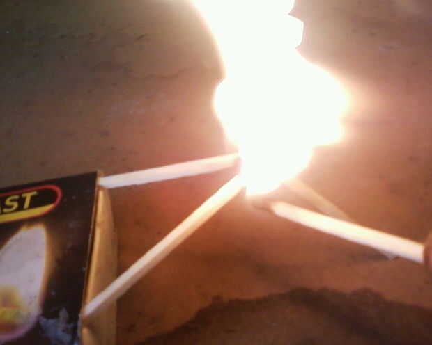 Luz los partidos usando el otro partido y dejar que los partidos a quemar. Mientras se queman, el tercer partido irá hacia arriba y hacia abajo y mayoría de las veces estará en el aire cuando los partidos dejan de quemar.