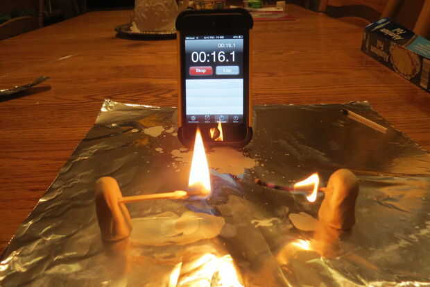 Para probar el poder de los partidos coloca un partido normal y un partido de supervivencia en terrones de arcilla, tanto horizontal como verticalmente. Me ilumina al mismo tiempo y los partidos tratados eran los ganadores obvios.