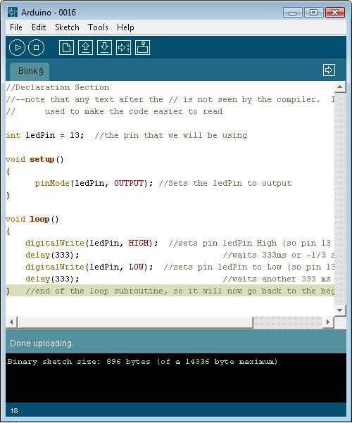 Utilizaremos el pin 13 porque está conectada a un LED que está en el Consejo (cerca del pin, con la etiqueta L)