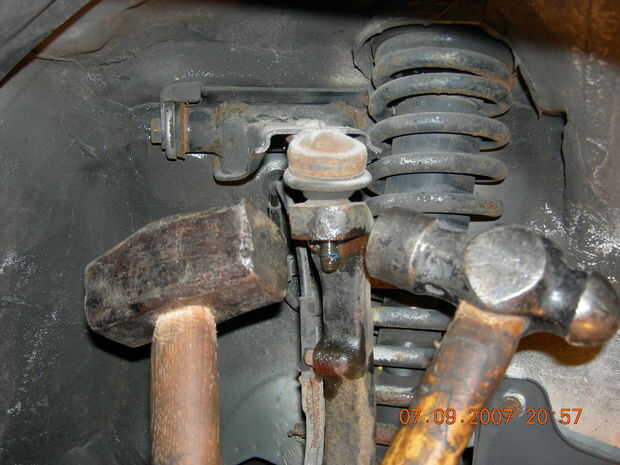 -Uso una herramienta de extracción de la rótula. Estos parecen ahorquillada, abrazaderas, que tratan de presionar la salida de forma cónica. Se puede trabajar, pero generalmente funcionan mejor en combinación con (tres) o (cuatro)