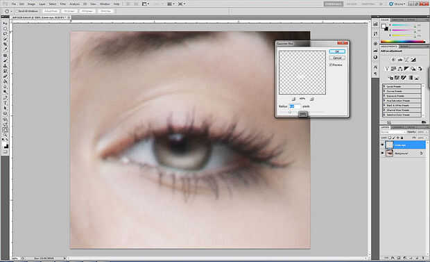 Ahora que tenemos nuestra forma de media luna, tenemos que difuminar para deshacerse de los bordes duros. En la barra de menú principal, vaya a filtro > Desenfoque > Desenfoque gaussiano. Una vez usted haga clic en él, se abrirá una pequeña ventana y usted puede personalizar cómo borrosa que desee. Cuanto mayor sea el radio, más borrosa será.