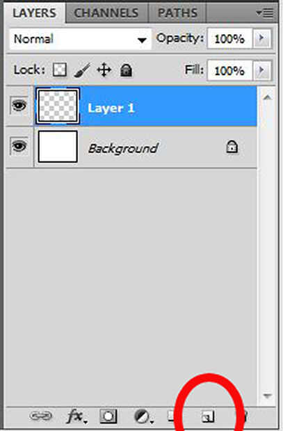 En primer lugar, debe crear una capa en blanco en la paleta de capas. Puede hacer esto haciendo clic en el icono de capa nueva o golpear cmd + shift + N, (ctrl + shift + N para PC).