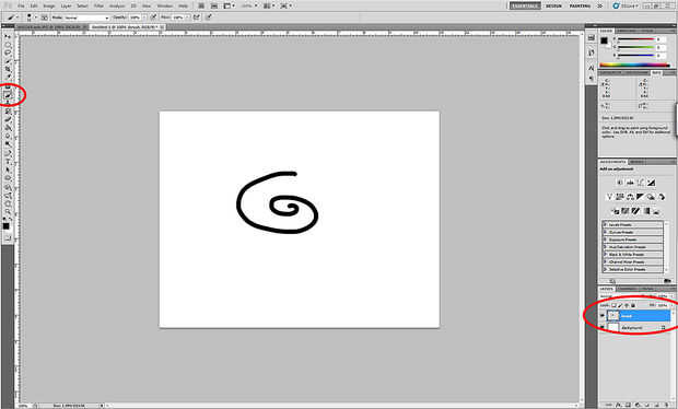 Con la herramienta de pincel, crear cómo se verá el cepillo. En este ejemplo particular, hice una espiral simple, pero realmente cualquier cosa puede convertirse en un cepillo, incluso una firma o un dibujo completo!